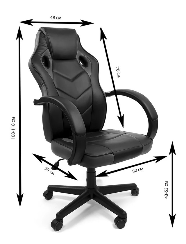 Висота сидіння плавно регулюється завдяки газовому амортизатору в межах 10 см.Хрестовина — міцний пластик. 5 коліс.