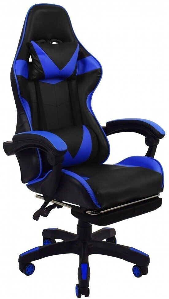 Ігрове геймерське крісло Bonro B-810 чорно-синє з підставкою для ніг