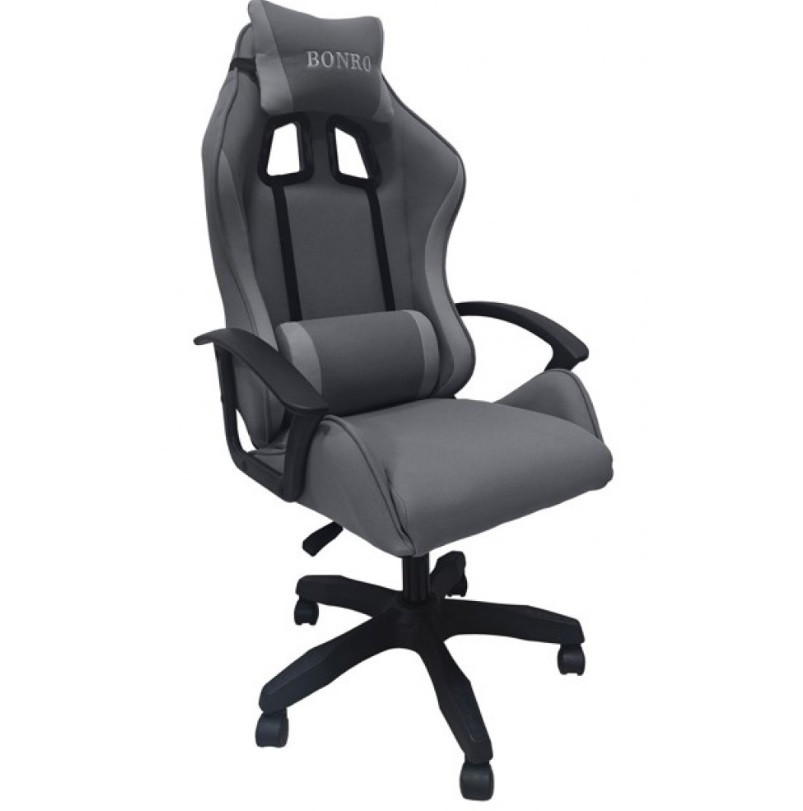 Крісло геймерське офісне тканинне з двома подушками Bonro B-944 сіре