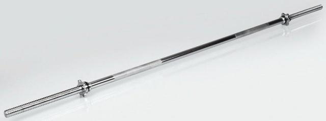Гриф для штанги прямий виготовлений із якісної сталі, хромований, гвинтовий. Для зручності в зоні хвата спеціальна насічка проти ковзання. У зоні дисків — різьблення.