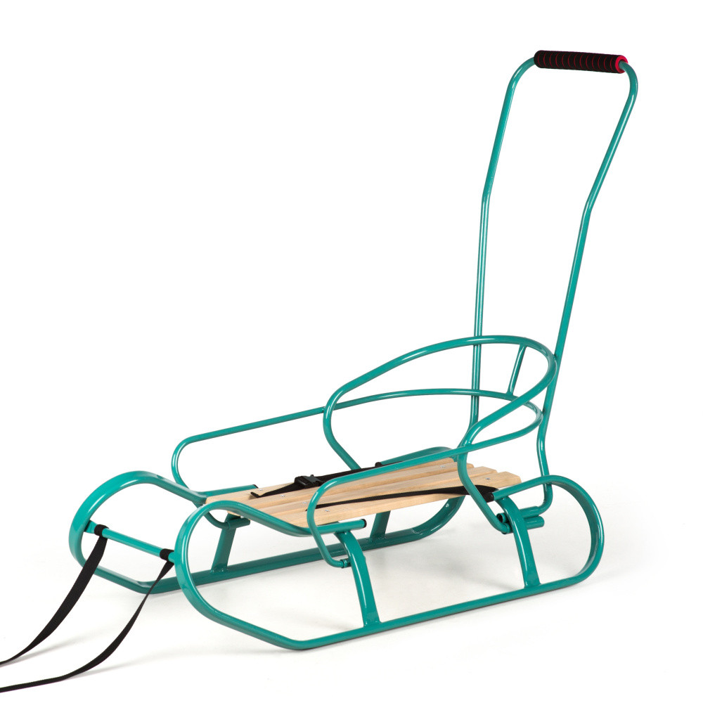 Санки для дітей і підлітків зі знімною спинкою й батьківською ручкою "Експрес" бірюзові