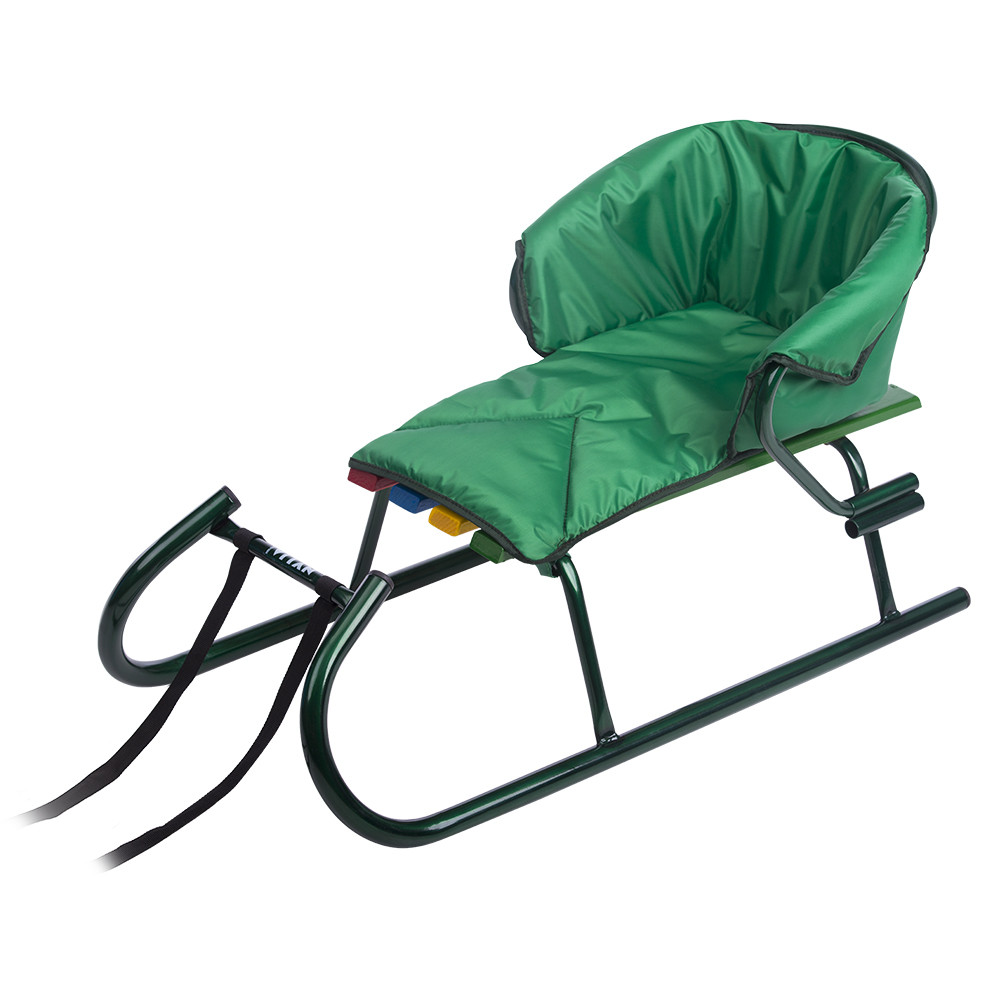 М'яка спинка чохла виготовлена так, щоб повністю закривати металеву спинку санок із закотом за ручки. Цей чохол для санок універсальний — підходить до всіх моделей санок зі знімною спинкою.