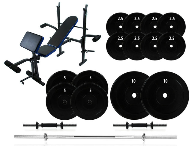 До комплекту спортивної універсальної лавки для жиму 7F L310 входить набір для штанги та гантелей, загальною вагою 72 кг. (посадковий діаметр 30 мм):