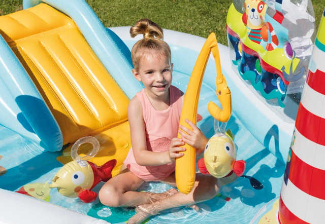 Надувний ігровий басейн для дітей Intex «Весела Риболовля» з надувною вудкою — чудовий маленький аквапарк у вашому домі.